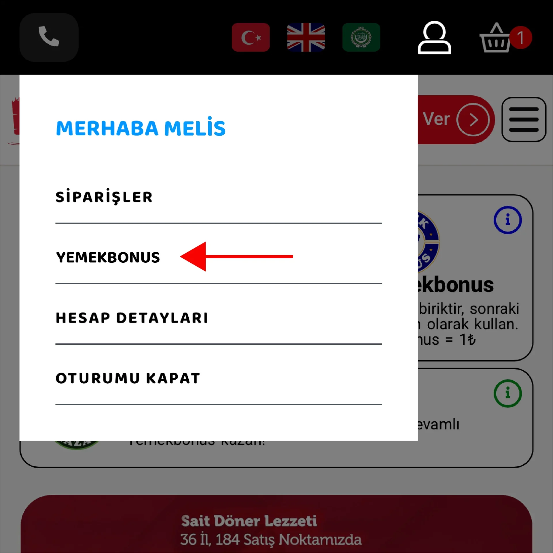 2. adım: Açılan menüden “Yemekbonus” menüsüne gir.