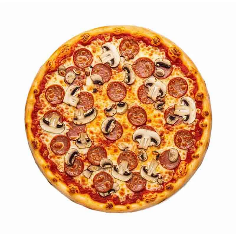 Özel pizza sosu, pizza peyniri, sosis, mantar